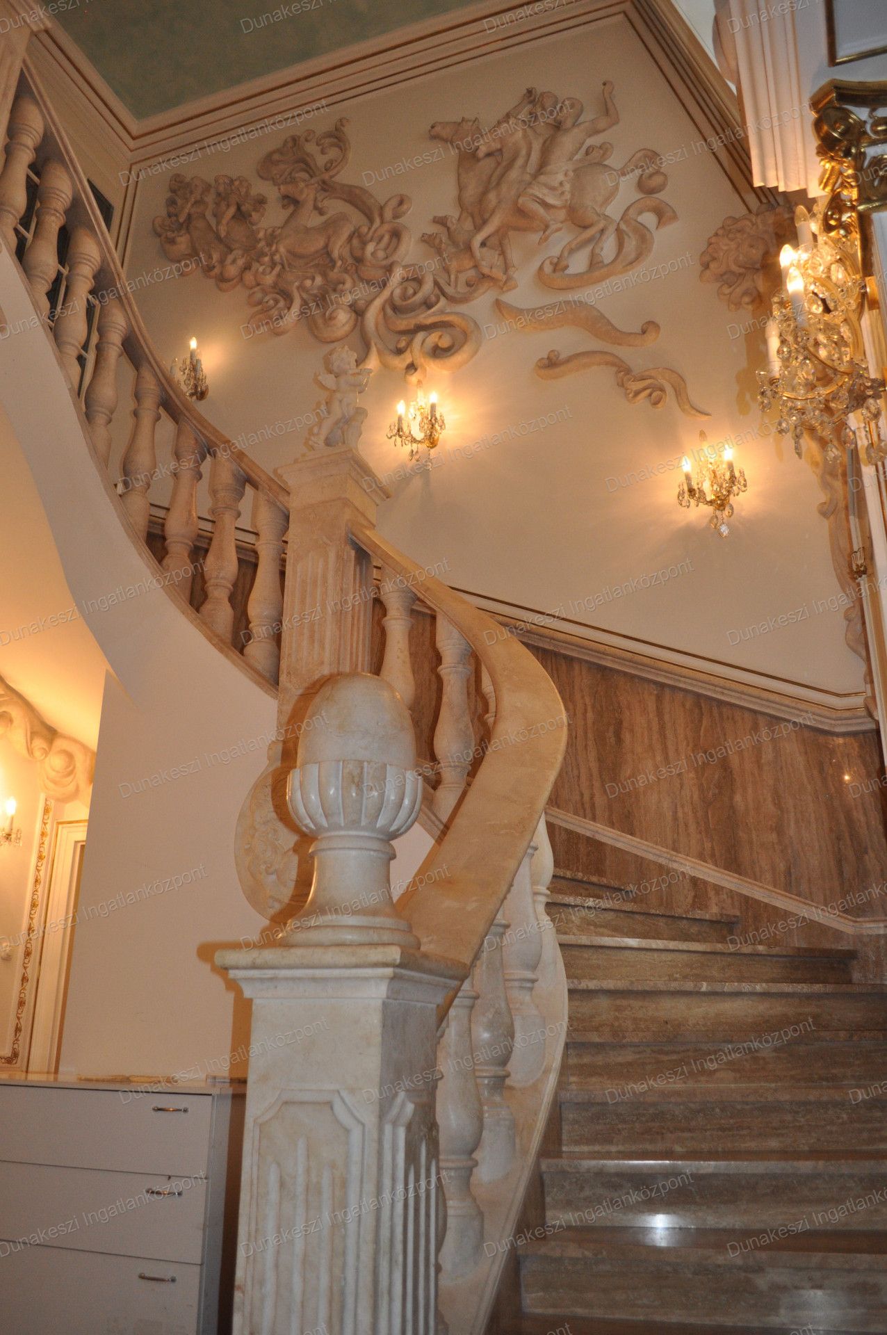 Egyedi márvány szobrok, burkolatok, kézzel festett freskók, aranyozott díszítések, kristálycsillárok, külön lakosztályok fürdőszobával! Egyedi barokk stílusú fa nyílászárók. Tágas nappaliban márvány kandalló, márvány lépcsők , padlóburkolatok, elektromos redőnyök, távirányítású kapuk. 4,2 méteres belmagasság.